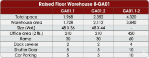 Floor: Burnished floor , loading 3 tons/ sq.m
